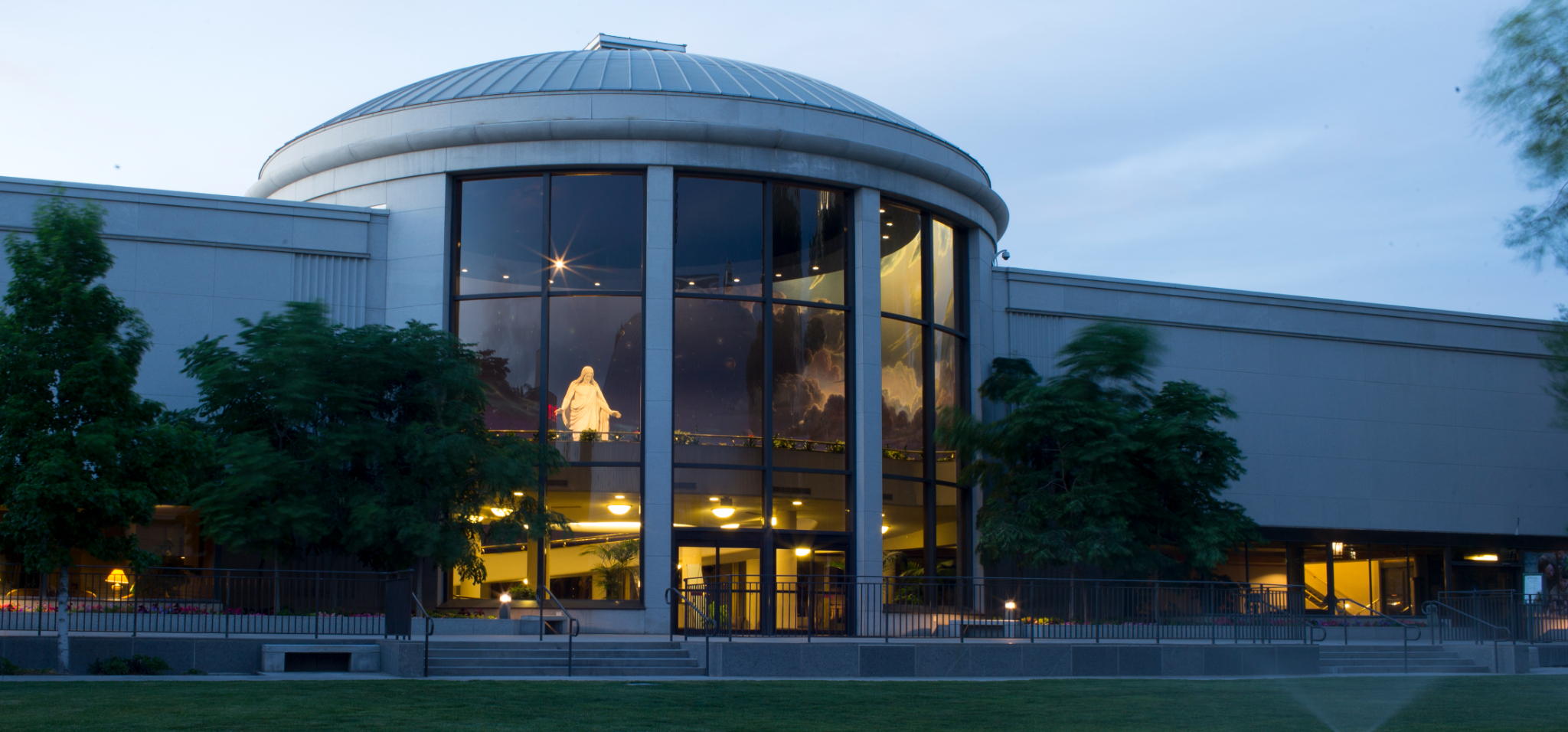 The North Visitors’ Center was built in 1963 to welcome visitors to Temple Square from the north side of the temple block. The building included an 11-foot replica of Bertel Thorvaldsen’s ‘Christus’ (the original sits in the Church of Our Lady, a Lutheran church, in Copenhagen, Denmark). The replica will be carefully removed from the facility this summer for preservation. It will be reinstalled on Temple Square at the end of the renovation process.