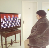 Marisa, from the Jaguarão congregation in Jaguarão, Brazil, watches a session of general conference from her retirement home on Sunday, October 4, 2020.2020The Pacific