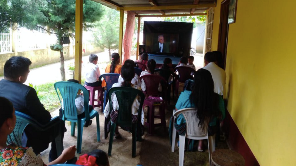 A group of Latter-day Saints in Senahú, Cobán, Guatemala, watches general conference together on Saturday, October 4, 2020. From October 3-4, 2020, the conference program reached a potential radio and television audience of 1.4 million people in Guatemala, El Salvador, Nicaragua, Honduras, Belize, Costa Rica and Panama.2020 by Intellectual Reserve, Inc. All rights reserved.In Central America, Church leaders met with the media and opinion leaders before general-conference weekend and explained more about the spiritual purpose behind the two-day event.