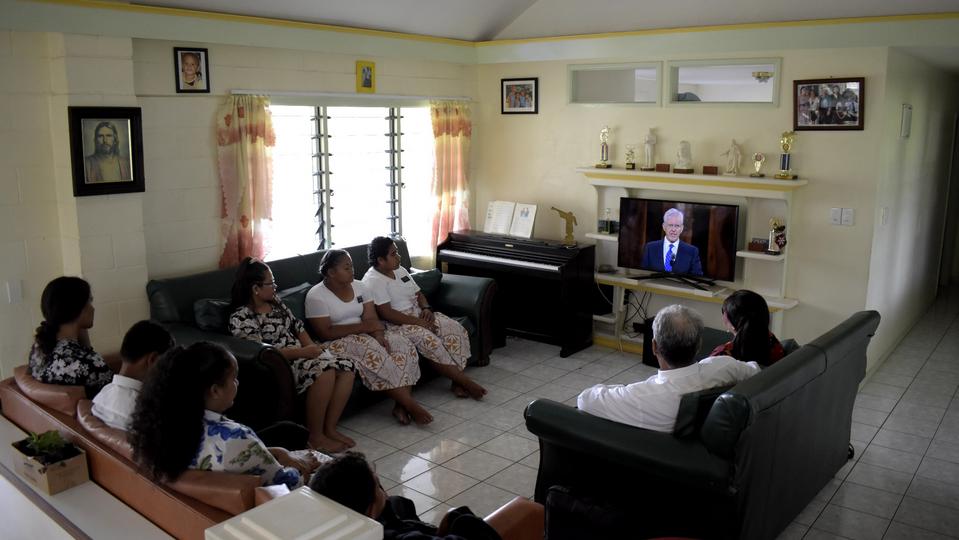 For the first time, general conference was broadcast on television and radio across Kiribati, an island country located in the central Pacific Ocean.