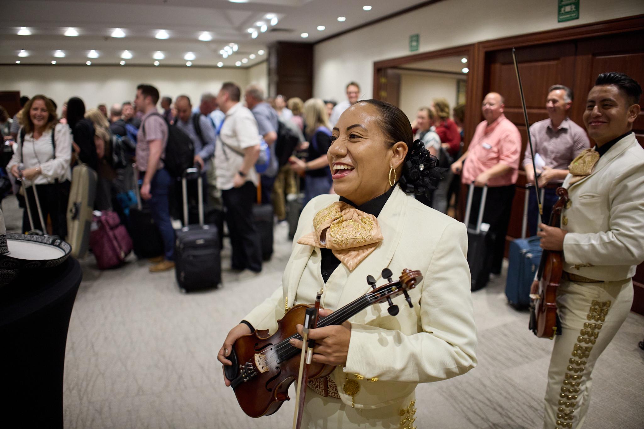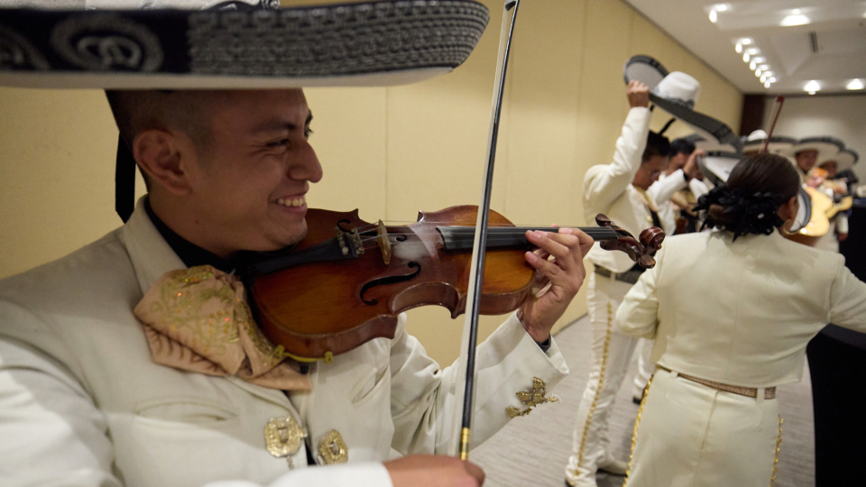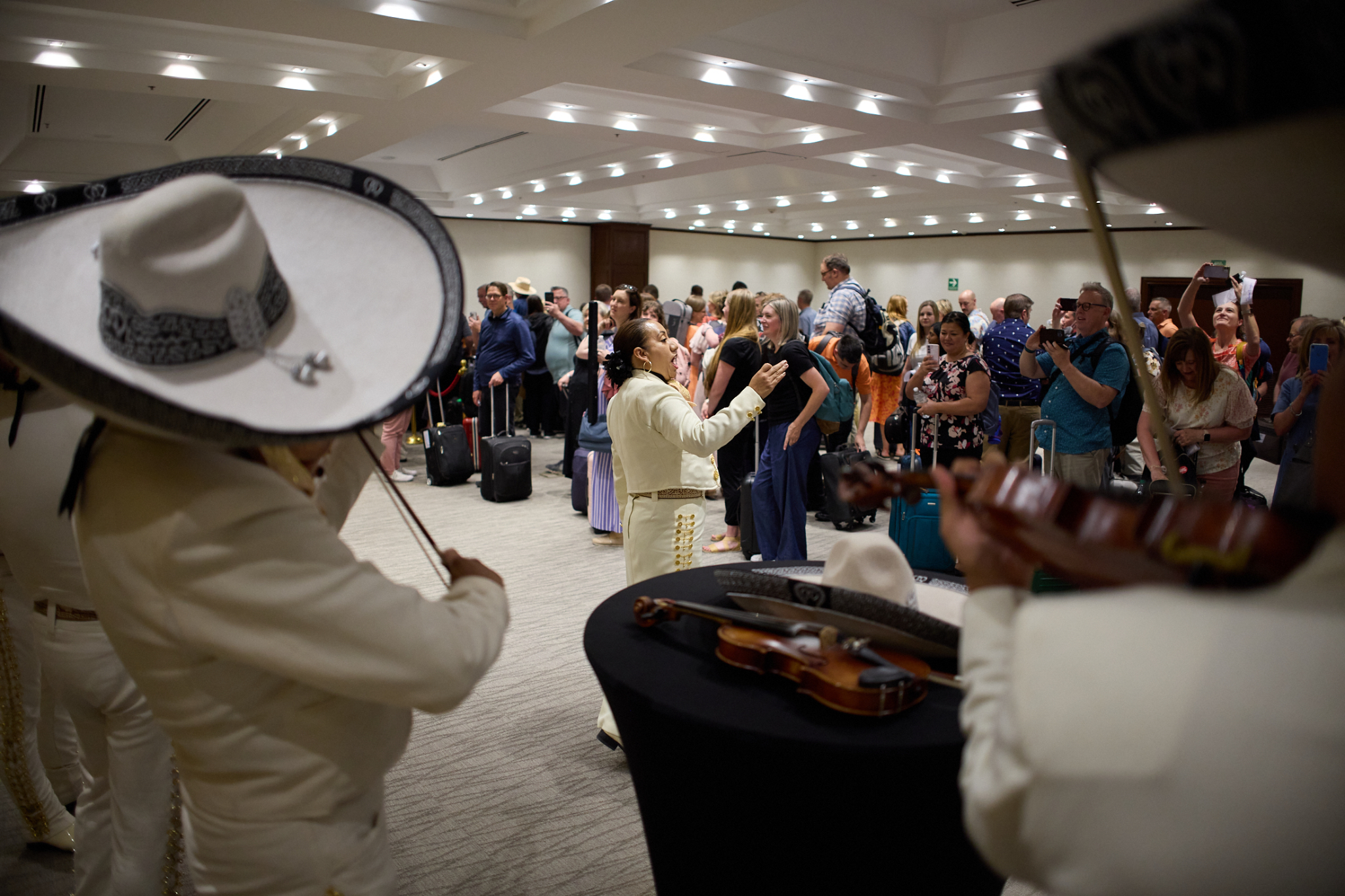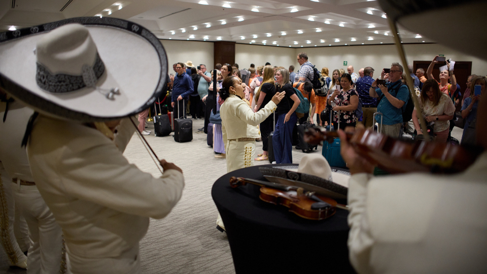 Choir and orchestra members arrived in Mexico City on Tuesday afternoon. The more than 400 singers and musicians were greeted by a traditional Mariachi band.