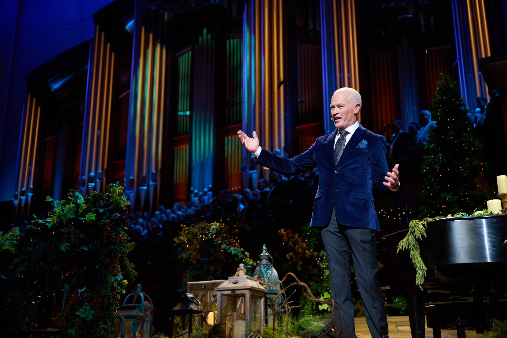 The concert begins with several medieval and English carols on the Conference Center stage, including “The Holly and Ivy” sung by Hilty and arranged by the Choir’s music director Mack Wilberg.