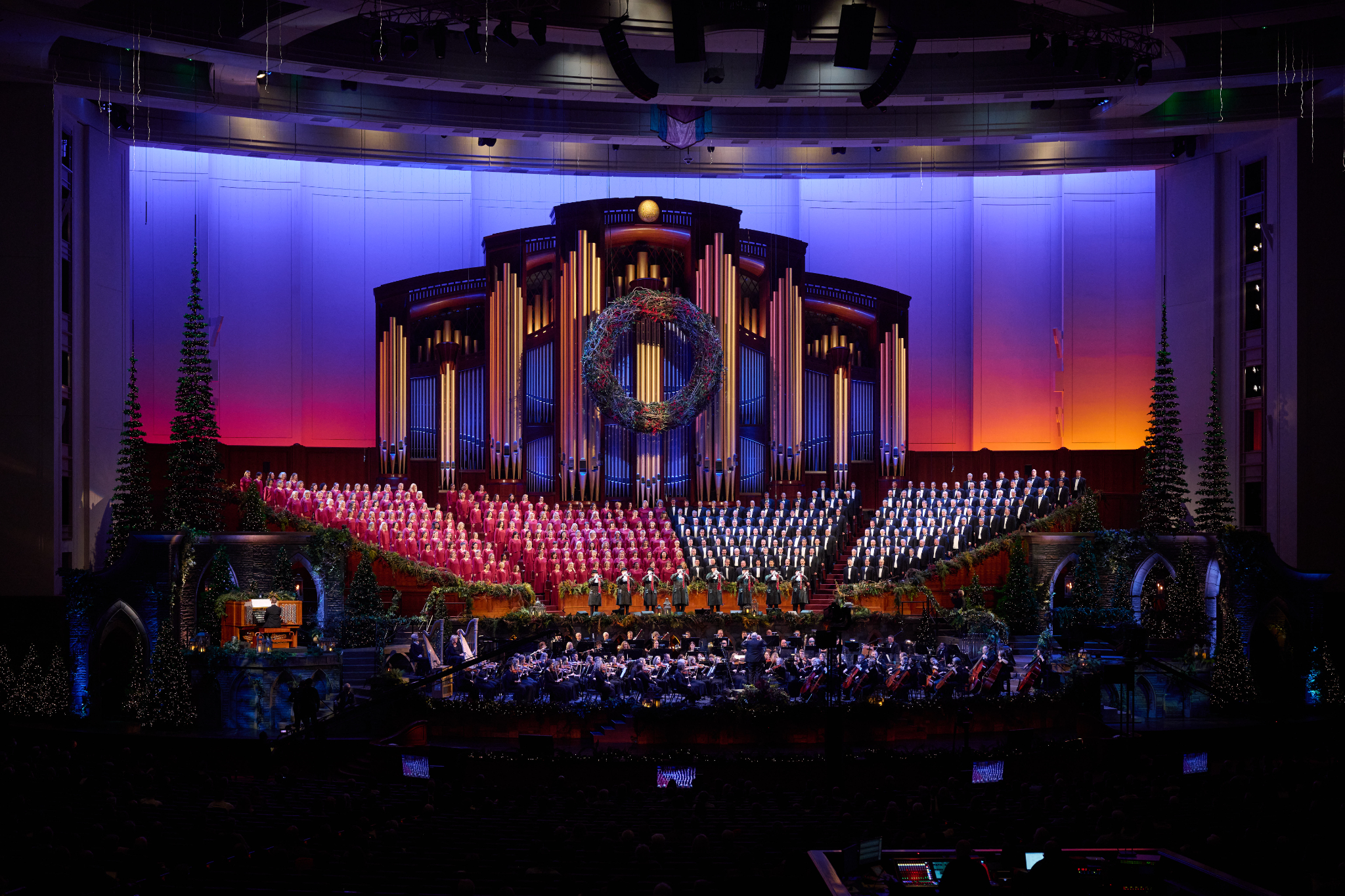 An audience of several thousand, socially distanced (due to COVID-19 restrictions on Temple Square), invited guests attended the broadcast recording on Thursday, December 16, 2021. Similar performances are scheduled for Friday and Saturday nights. The Choir will also broadcast its weekly “Music and the Spoken Word” live on Sunday morning with the guest artists. Prior to COVID, the Conference Center’s 21,000 seats were filled for the popular annual performances. Tickets are not available to the public for any of the performances.