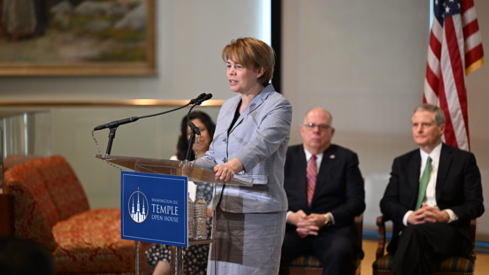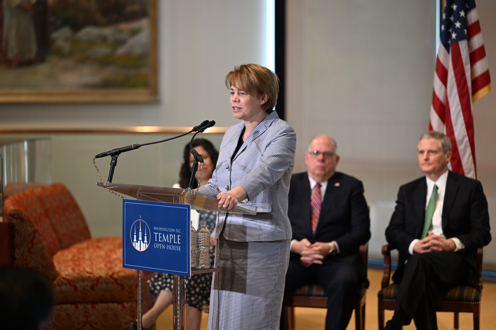 Maryland Governor Larry Hogan, who enjoyed the calm and quiet inside the temple, said the structure reflects the “wonderful work that The Church of Jesus Christ of Latter-day Saints does in the community. We’ve been working together with [the Church] on so many great project projects in the community — volunteering and food banks and getting people involved in supporting others.” (Two senior Church leaders met with him in 2019.)
