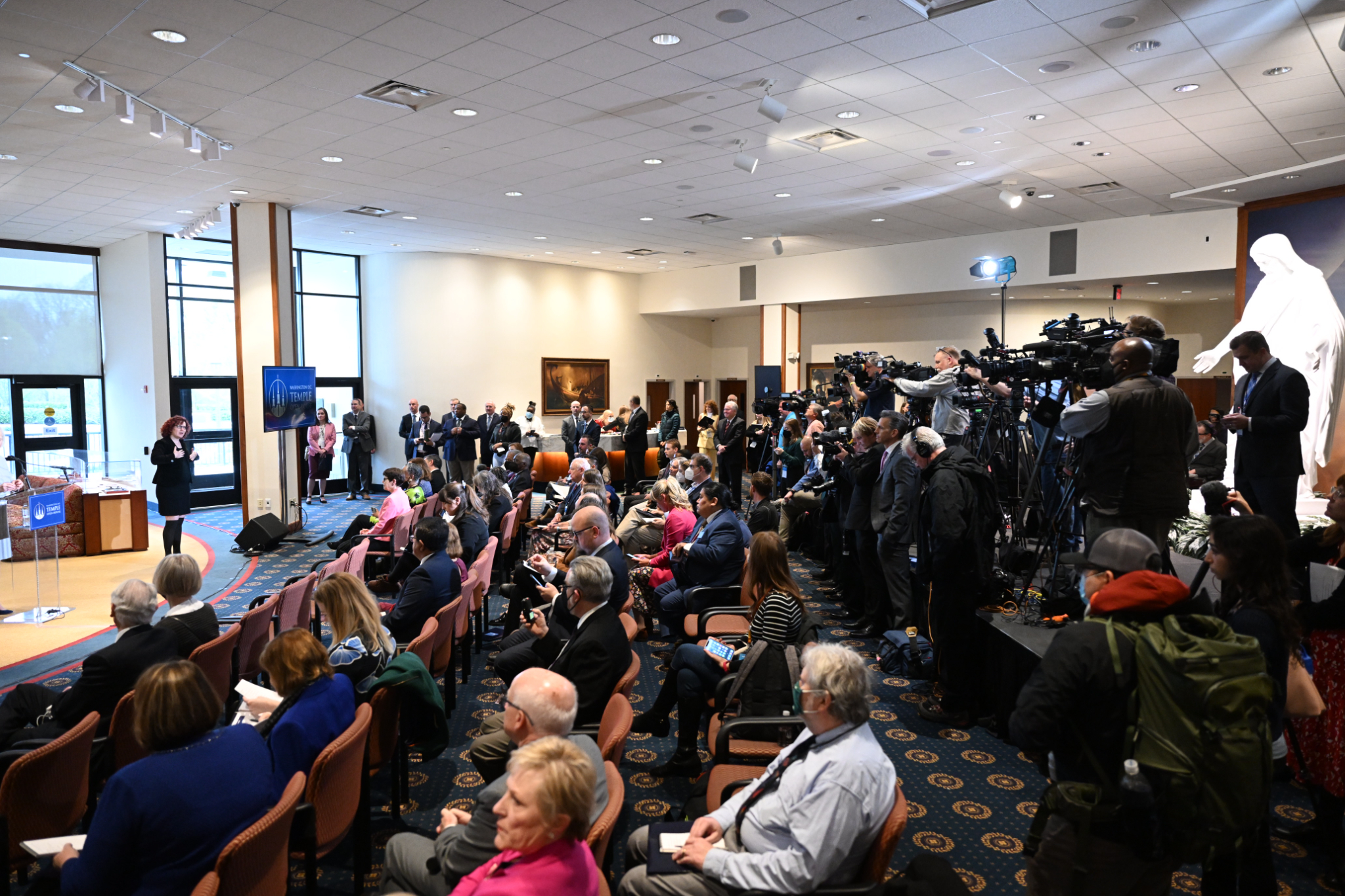 “Typically,” Elder David A. Bednar of the Quorum of the Twelve Apostles told assembled media, “God works from the inside out. Many times in the world, we work from the outside in. As we make commitments, sacred covenants, our hearts are changed, and people then change their circumstances. So, we hope that what you learn today is not just about this building, how it was constructed and how it was renovated. But for us, what is most important is how our hearts are changed as we learn about God, love God and serve our brothers and sisters. We welcome you and are delighted that you’re here today.”