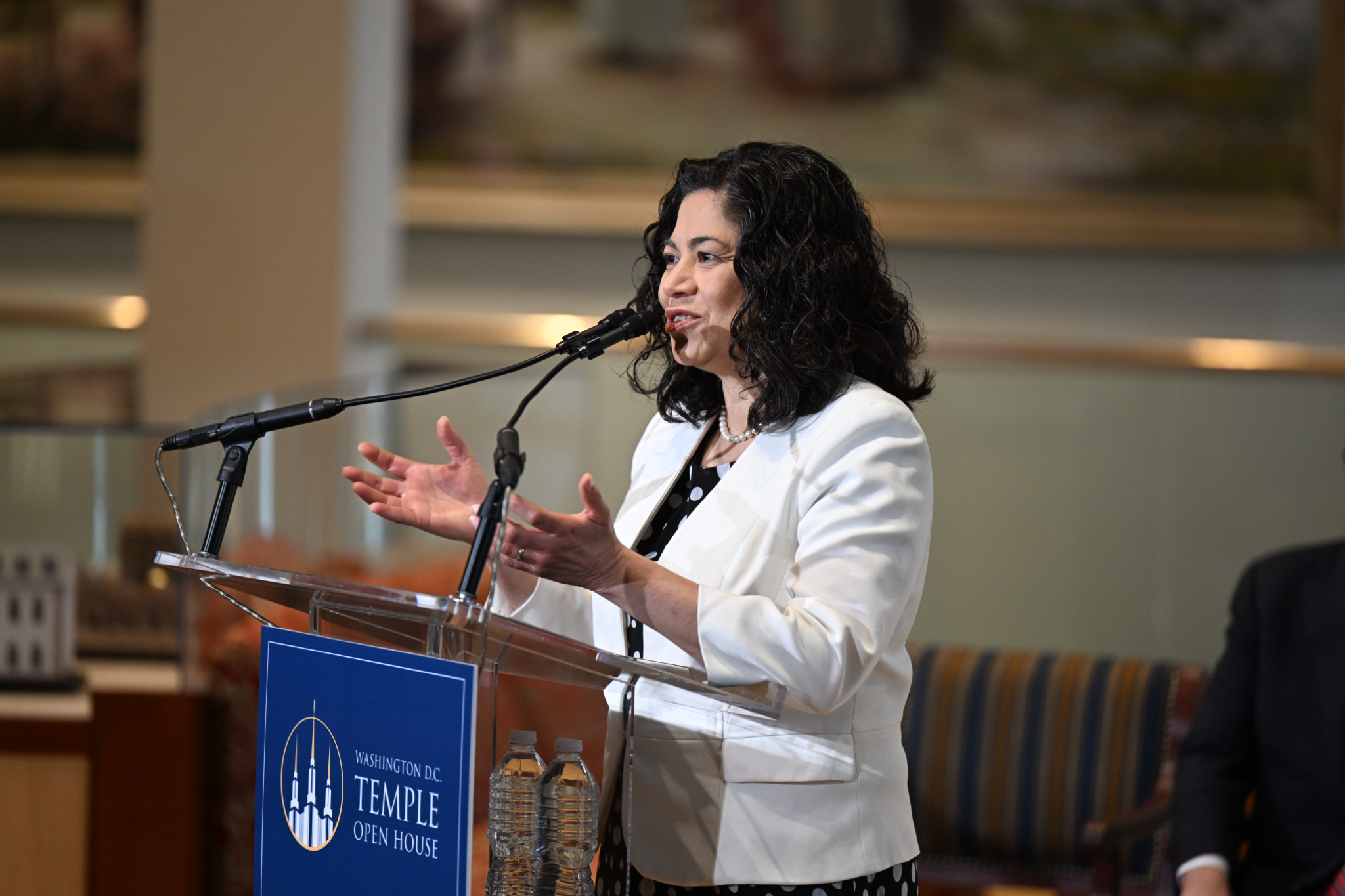 Sister Sharon Eubank of the Relief Society General Presidency said, “The temple is about the work of people who love God and want to publish peace.”