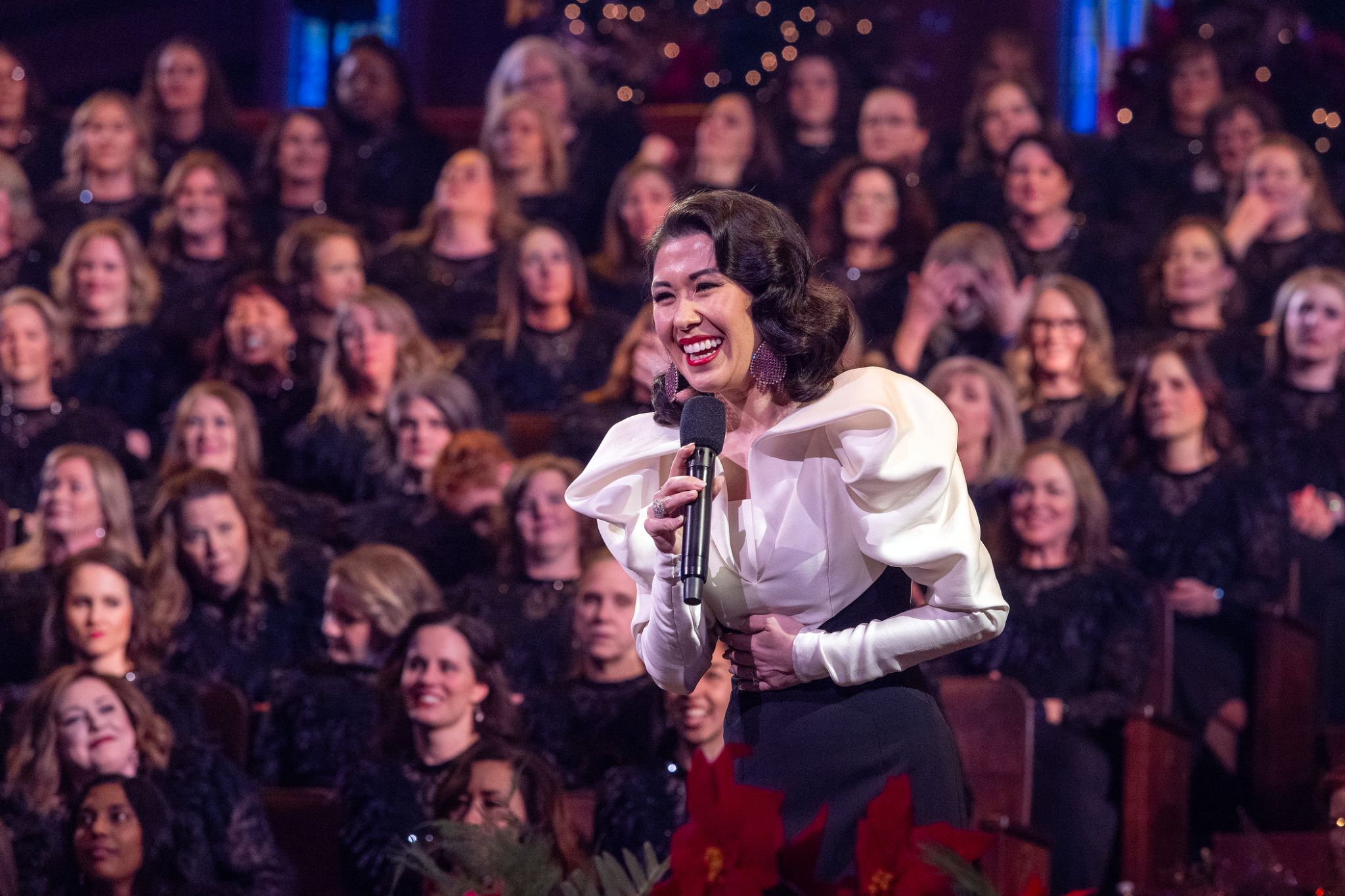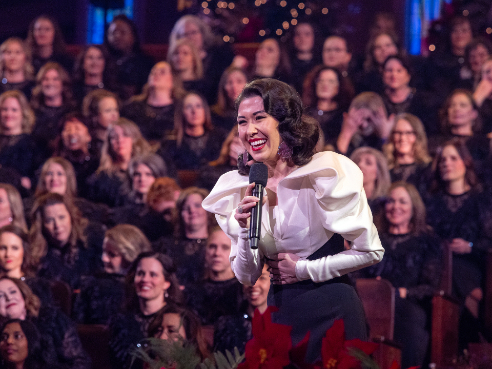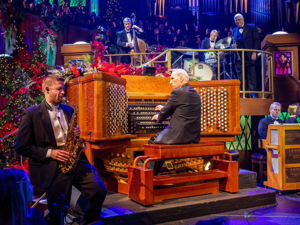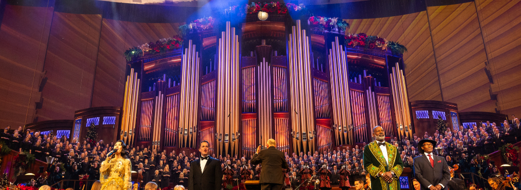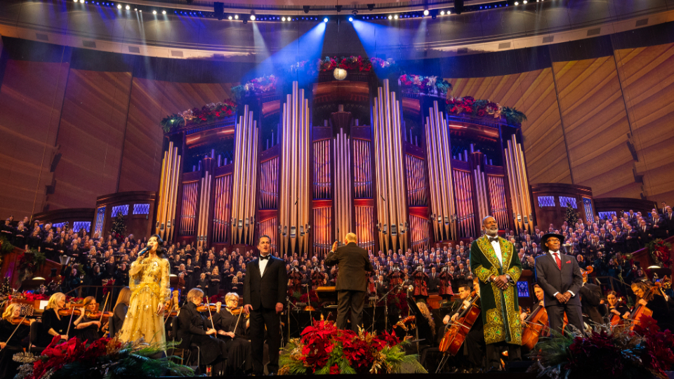 Tony Award-winning actress and singer Ruthie Ann Miles performs with the Tabernacle Choir at Temple Square during the 2024 Christmas Concert at the Conference Center in Salt Lake City, Utah, on Thursday, December 19, 2024.2024 by Intellectual Reserve, Inc. All rights reserved.Organist Richard Elliott performs an arrangement of “When You Hear the Pipe and Drum,” a traditional French carol.