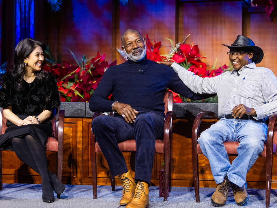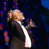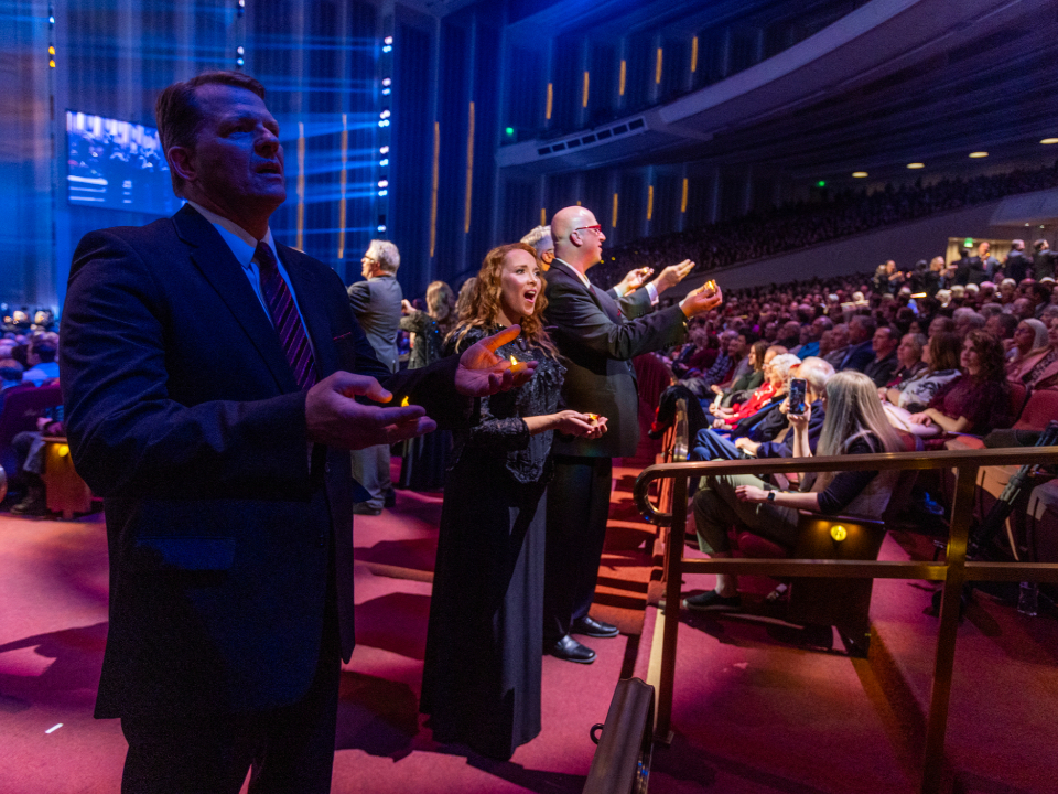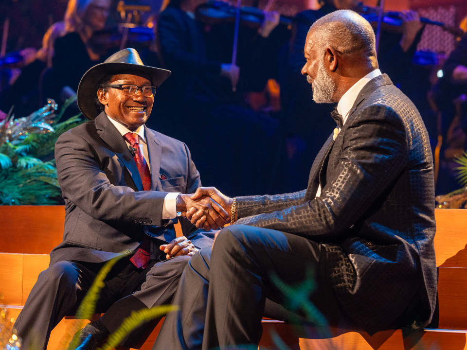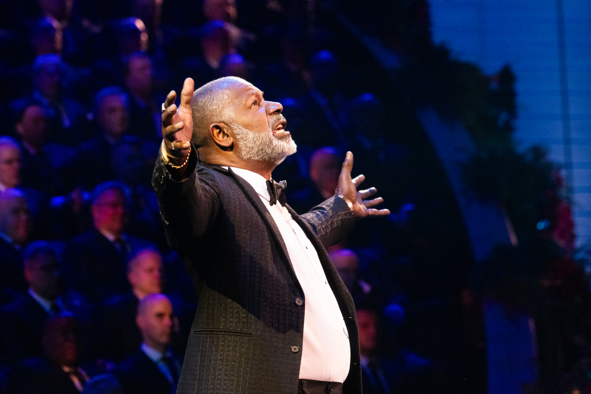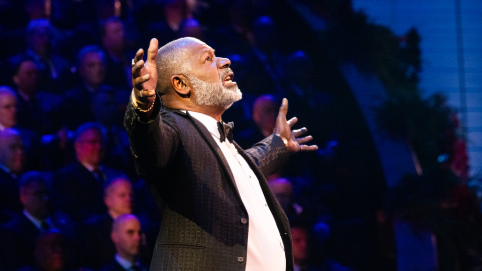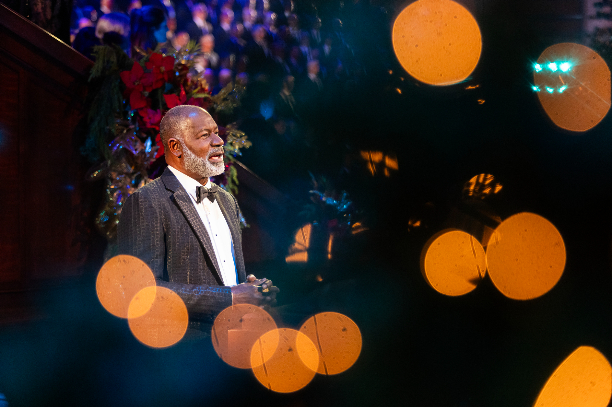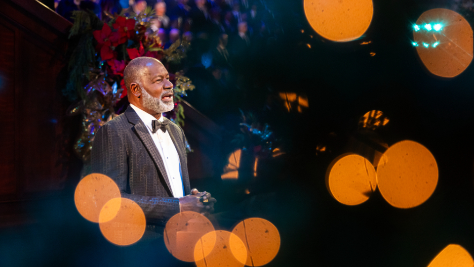Actor Dennis Haysbert narrates a story about the Mulli family in Kenya during the 2024 Tabernacle Choir Christmas Concert at the Conference Center in Salt Lake City, Utah, on Thursday, December 19, 2024. 2024 by Intellectual Reserve, Inc. All rights reserved.The concluding song is “Angels from the Realms of Glory,” a Choir favorite arranged by Mack Wilberg, who has been involved in the Christmas concert for the past 25 years, ever since the Conference Center opened.
