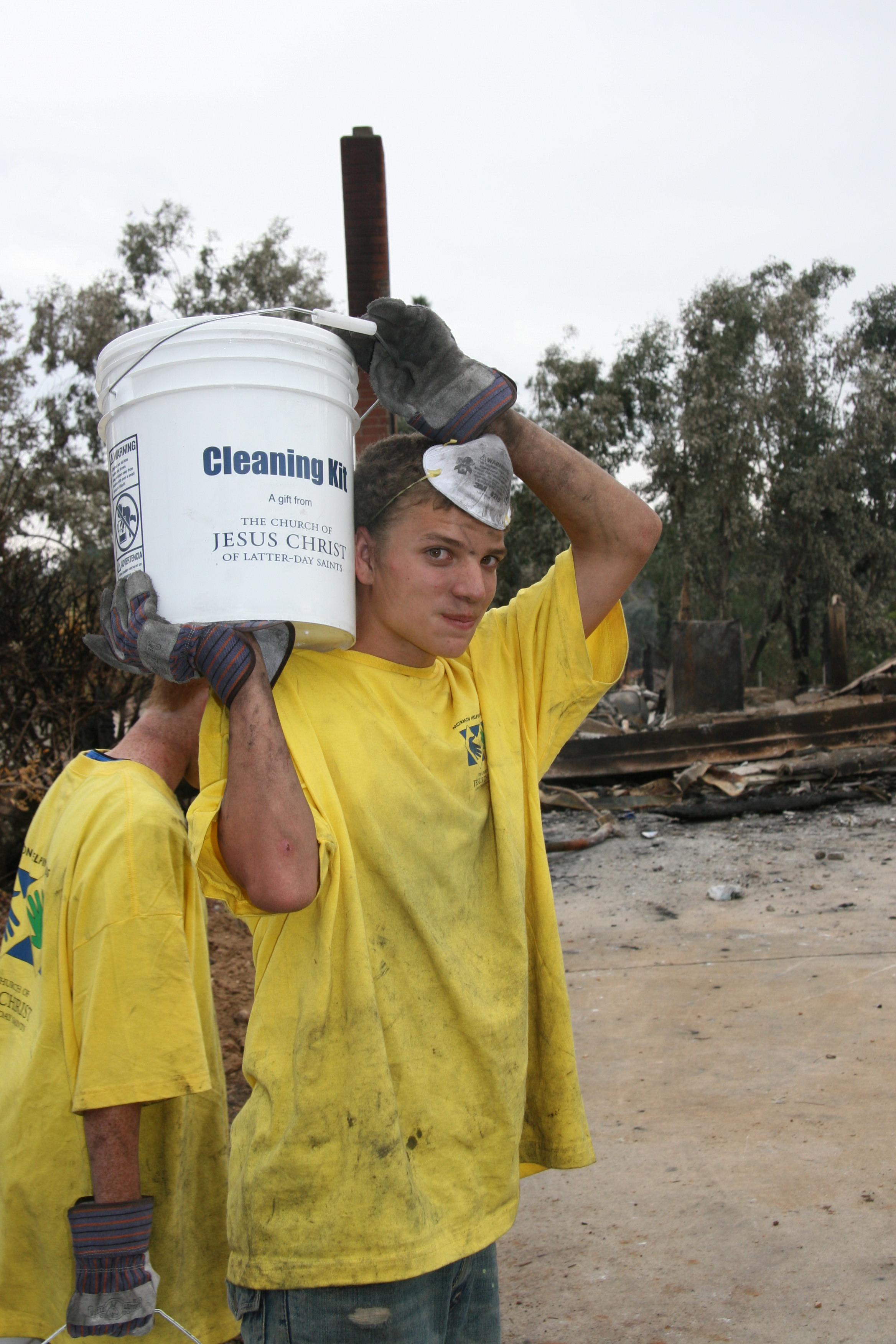 To date, the Church has delivered five truckloads of supplies to evacuees in the San Diego area. Blankets and hygiene kits were given to evacuees in the Lake Arrowhead/Running Springs area. Some 13 chapels have been used as temporary shelters over the last week. Nine semi trucks filled with 16,000 cleaning kits were sent from Salt Lake City to Southern California.