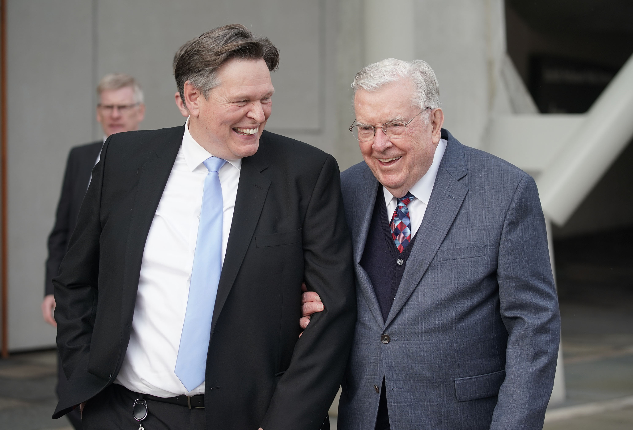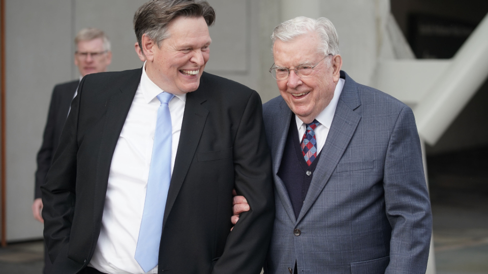 The leaders share a fondness for Great Britain, where they served as missionaries as young men. President Ballard arrived in 1948 and served for nearly two and a half years in what was then the British Isles Mission.