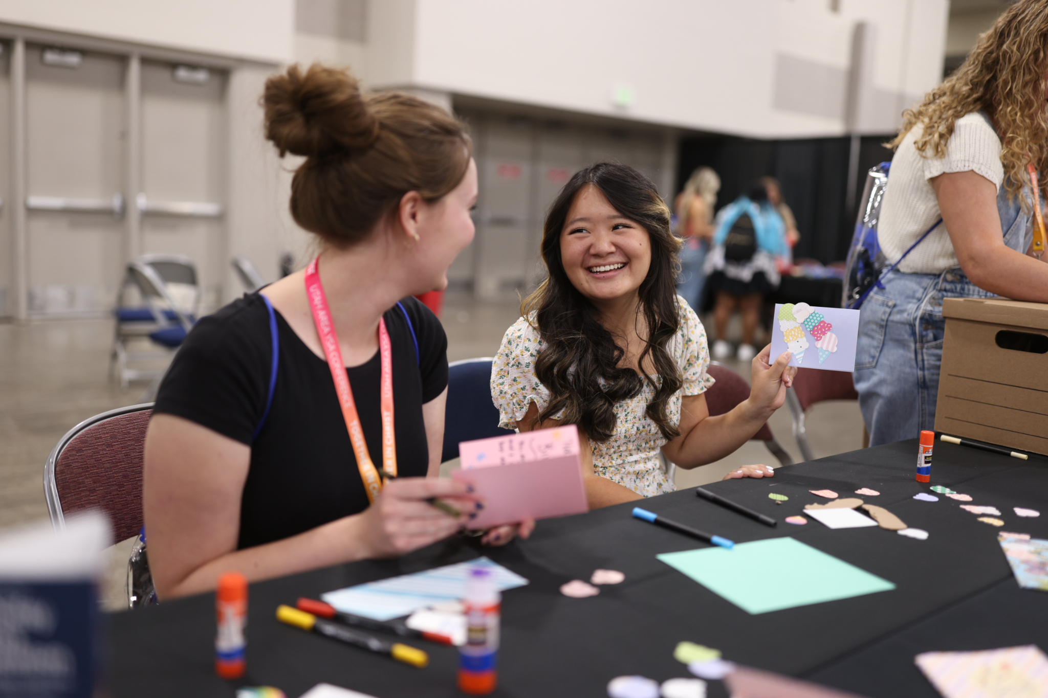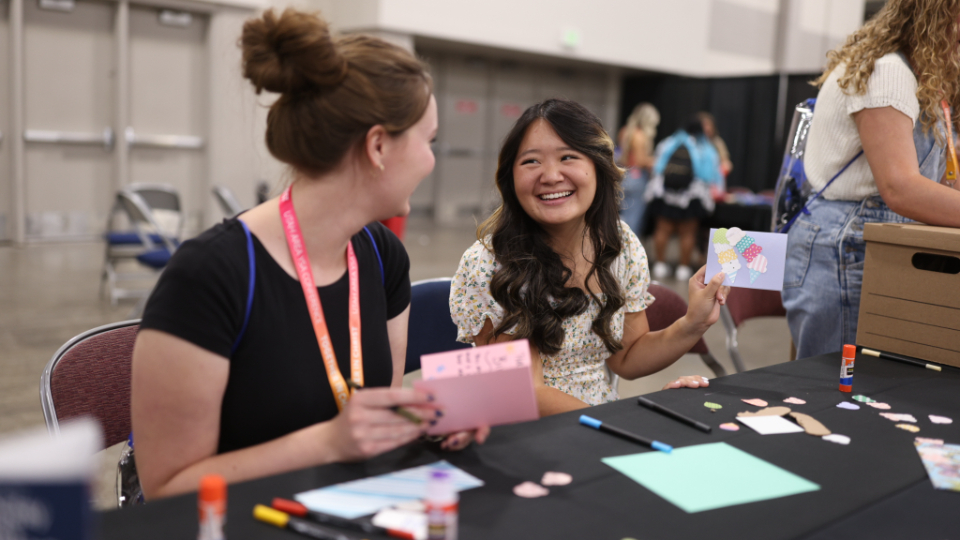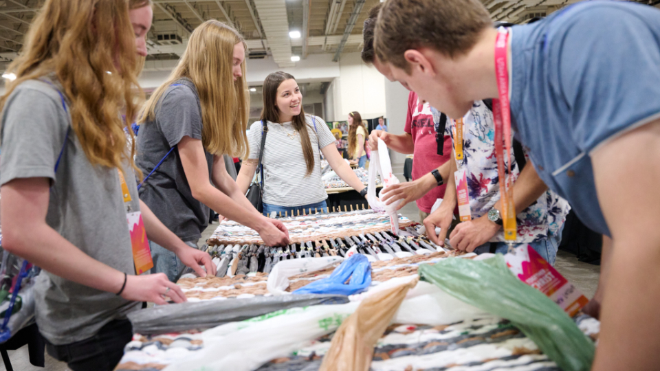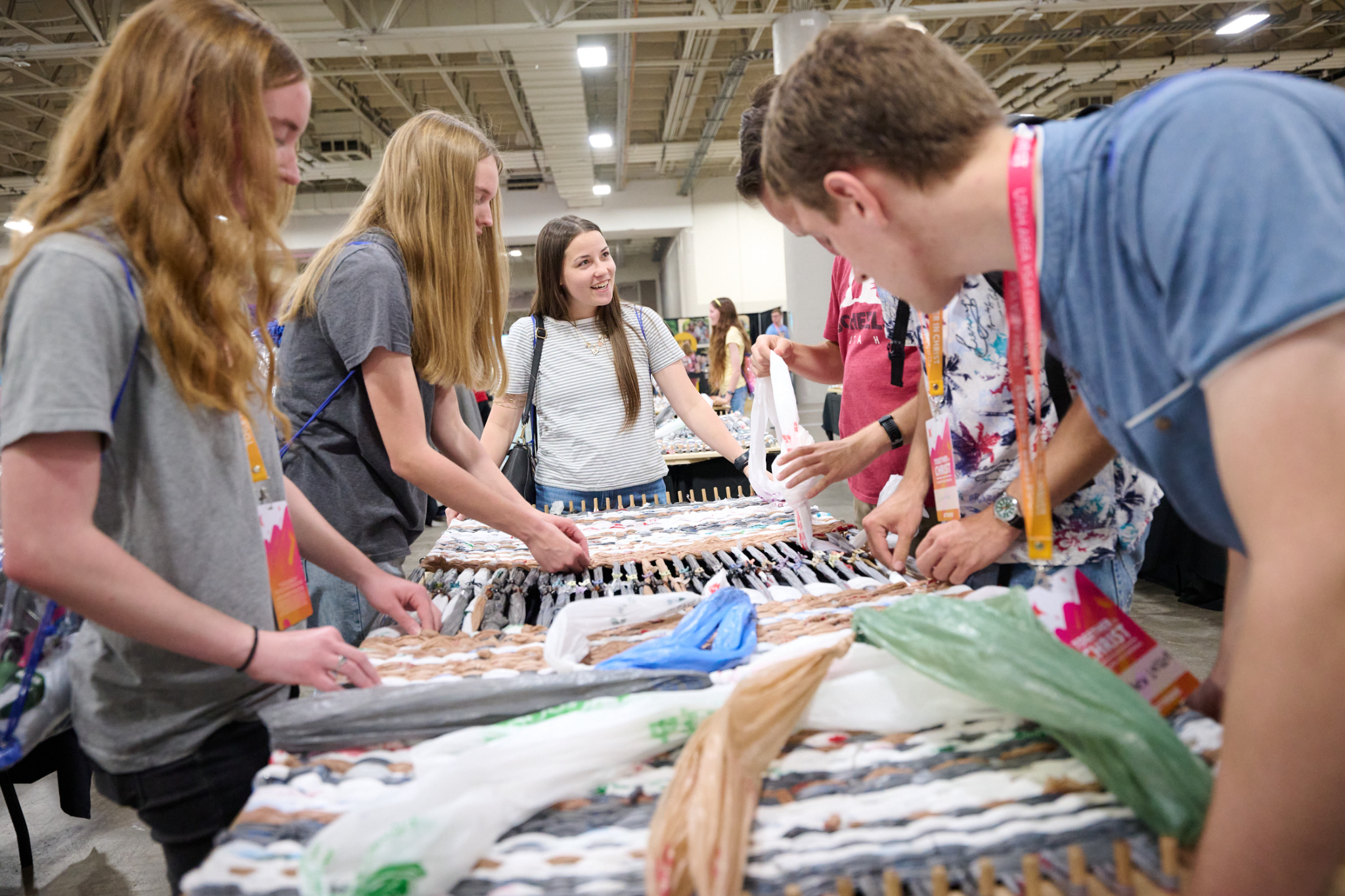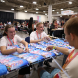 Several such opportunities were available at the Salt Palace throughout the weekend. Many assembled backpacks for children working through trauma, wrote notes to lonely seniors, created paracord lanyards for deployed soldiers, repurposed plastic bags into sleeping mats for the homeless, built birthday boxes for children in need, packed hygiene kits for the homeless, and created Disney-themed wigs for children undergoing medical treatment.
