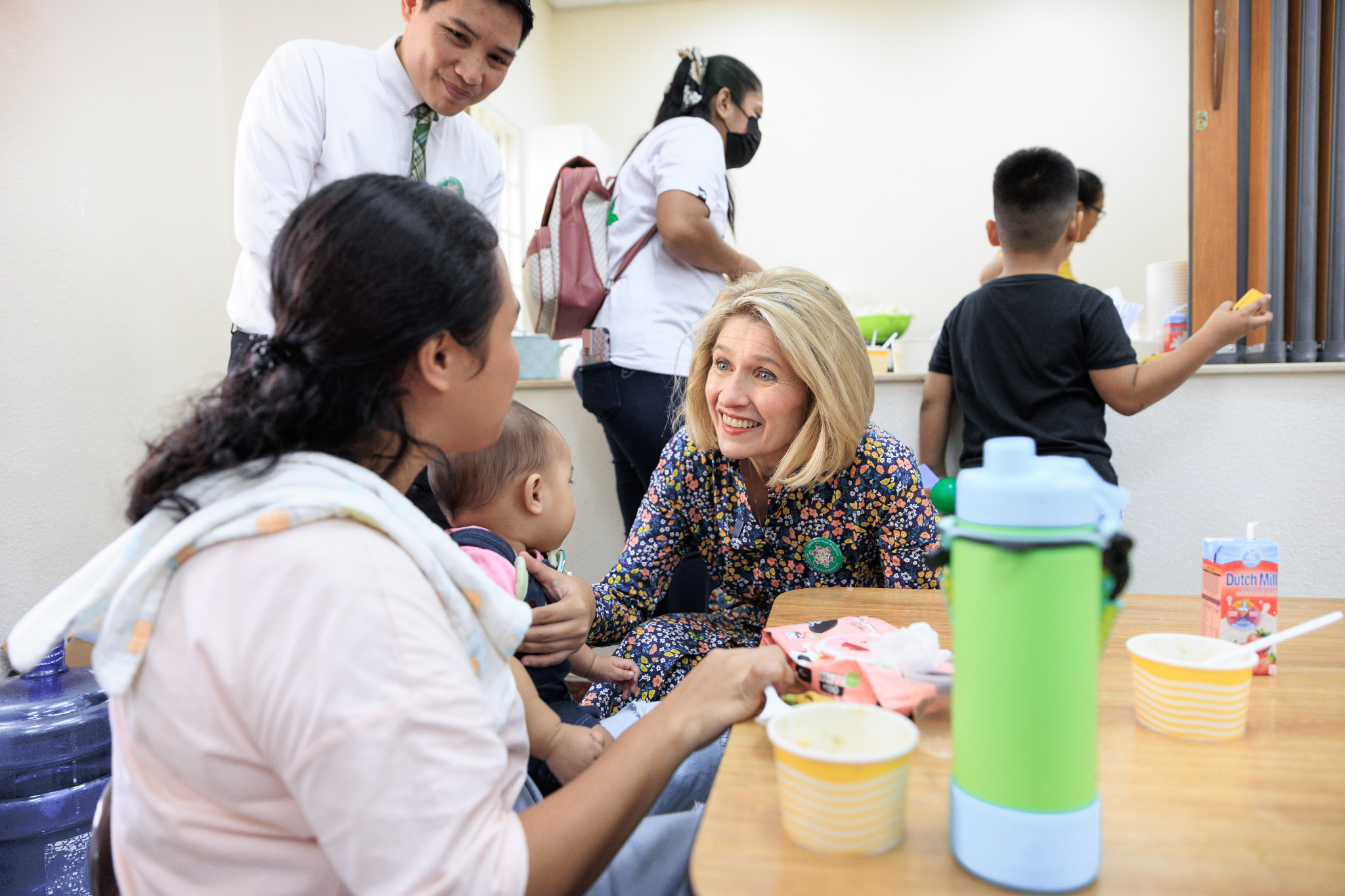 “I love how [local Latter-day Saint] stake leaders and particularly our Relief Society leaders have focused in on collaborating with the community, so we’ve got medical volunteers in here providing personal one-on-one counseling with mothers and their children,” said President Johnson during the screening in Manila.