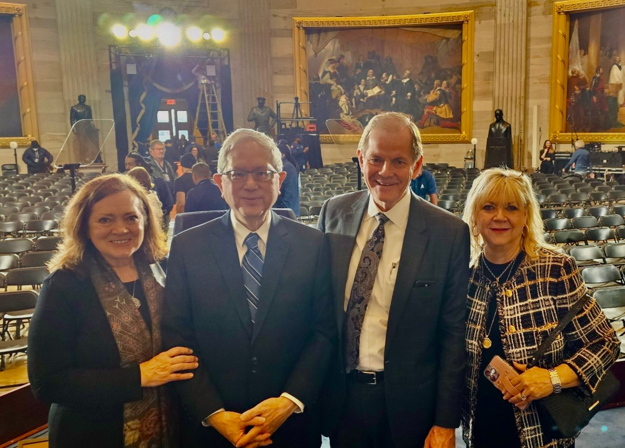 From left to right: Sister Susan Gong and Elder Gerrit W. Gong join Elder Gary E. Stevenson and Sister Lesa Stevenson inside the U.S. Capitol rotunda, the site of the 2025 presidential inauguration. The Apostles represented The Church of Jesus Christ of Latter-day Saints at events and meetings in Washington, D.C., surrounding the inauguration of President Donald J. Trump and Vice President JD Vance on Monday, January 20, 2025.© 2025 by Intellectual Reserve, Inc. All rights reserved.“Being in Washington, D.C., at such a time as this is an honor,” Elder Stevenson said. “The enduring principles that have been the foundation of our nation are important guides for our personal lives, families and communities.”