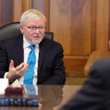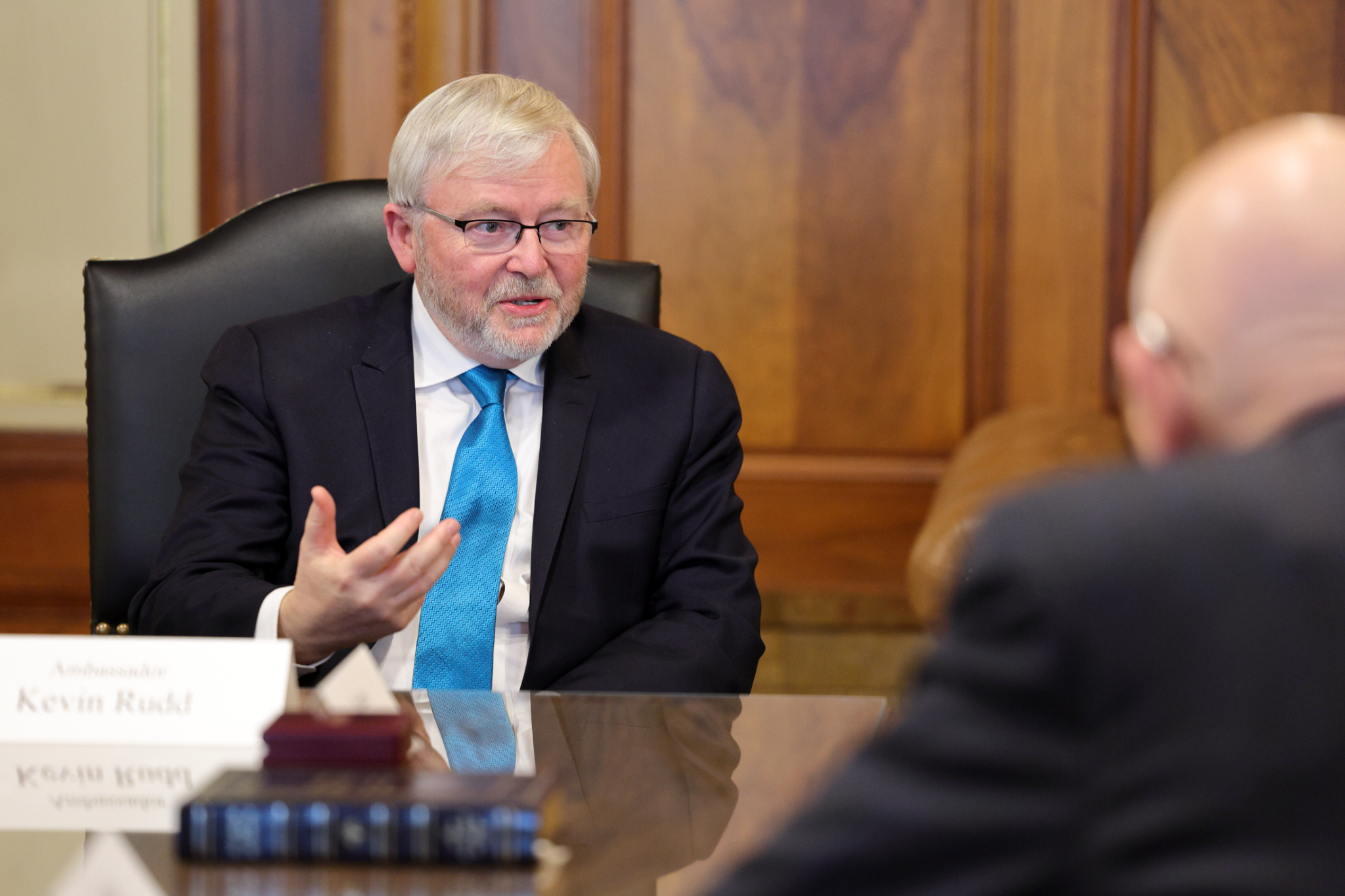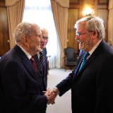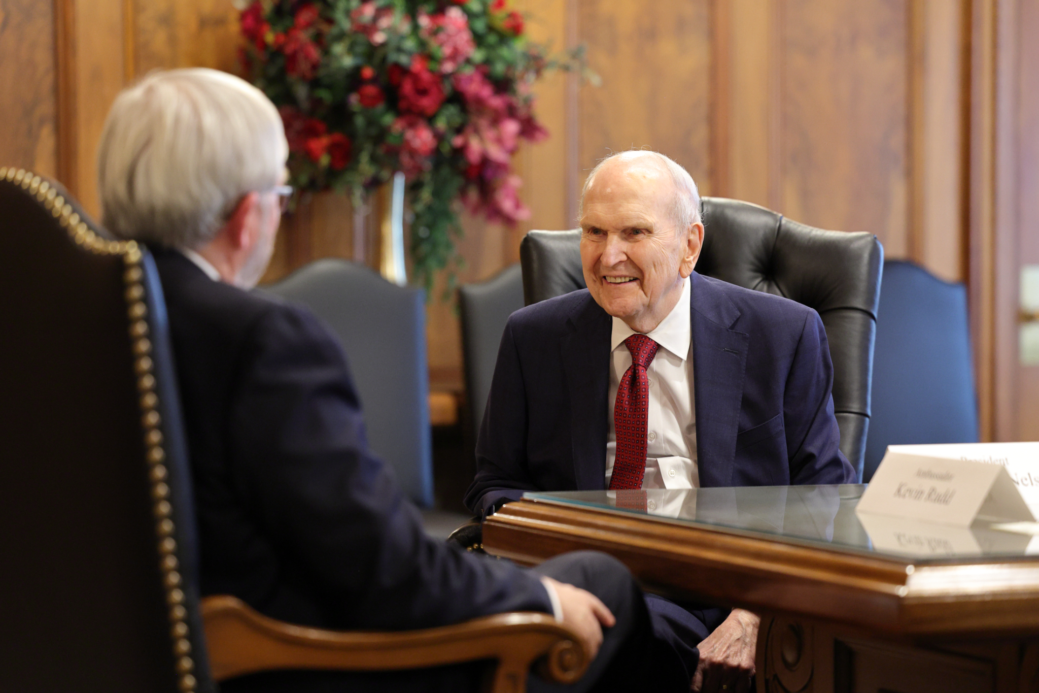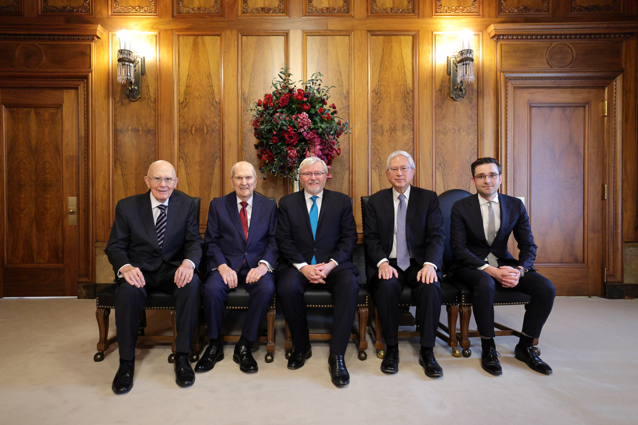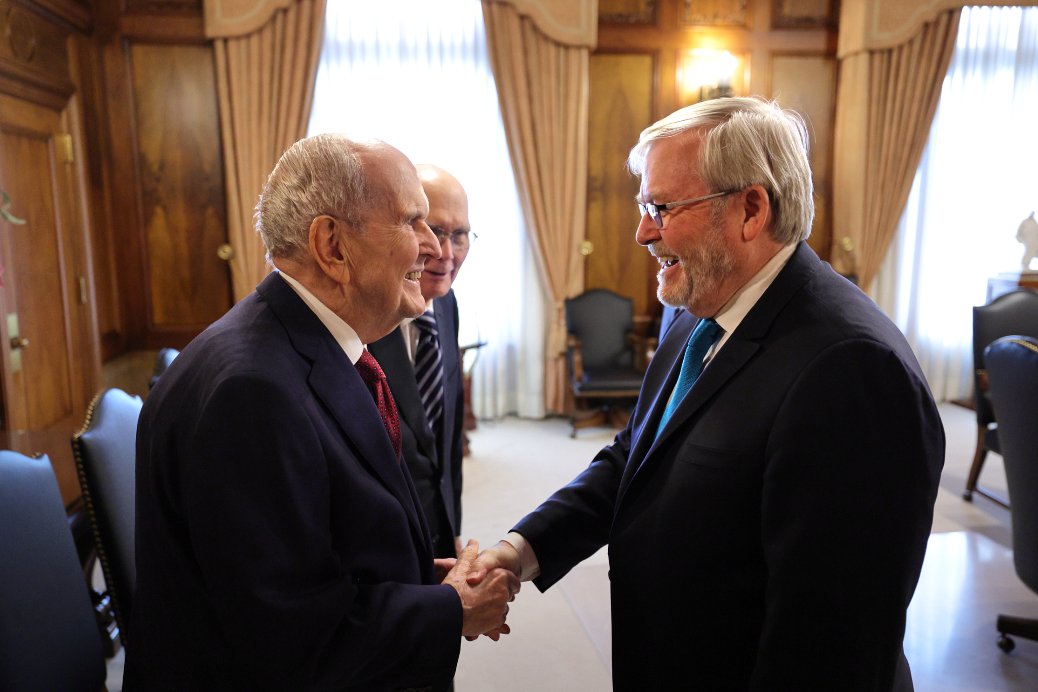 Australia’s Ambassador to the United States and former Prime Minister Kevin Rudd met with members of the First Presidency on Wednesday, February 28. Elder Gerrit W. Gong of the Quorum of the Twelve Apostles was also present at the meeting.