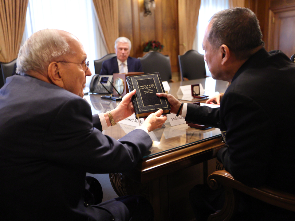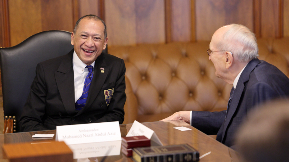 President Russell M. Nelson visits with Malaysia Ambassador to the United States Mohamed Nazri bin Abdul Aziz in the Church Administration Building in Salt Lake City, Utah, on Thursday, February 29, 2024. President Dallin H. Oaks, President Henry B. Eyring, Elder Dieter F. Uchtdrof and the ambassador's wife, Haflin Binti Saiful Azhar, were also present during the visit.2024 by Intellectual Reserve, Inc. All rights reserved.During his visit to Utah, the ambassador also met with state Lt. Gov. Deidre Henderson and BYU President C. Shane Reese.