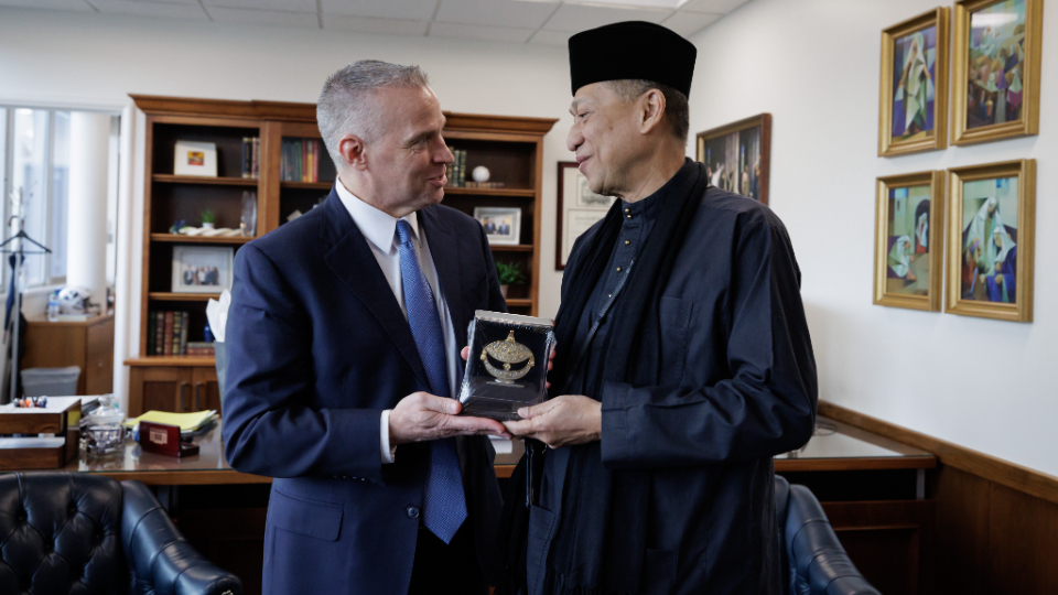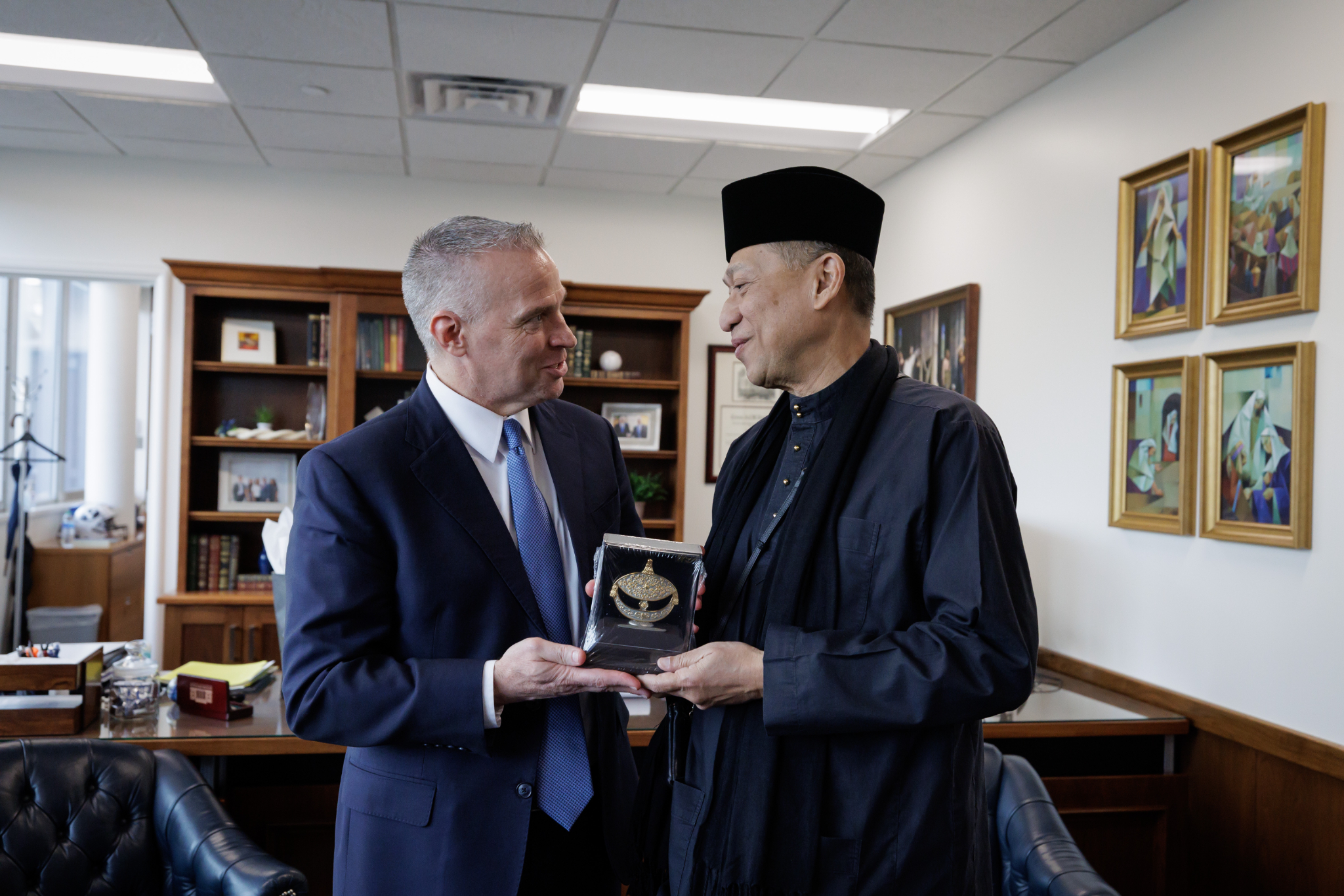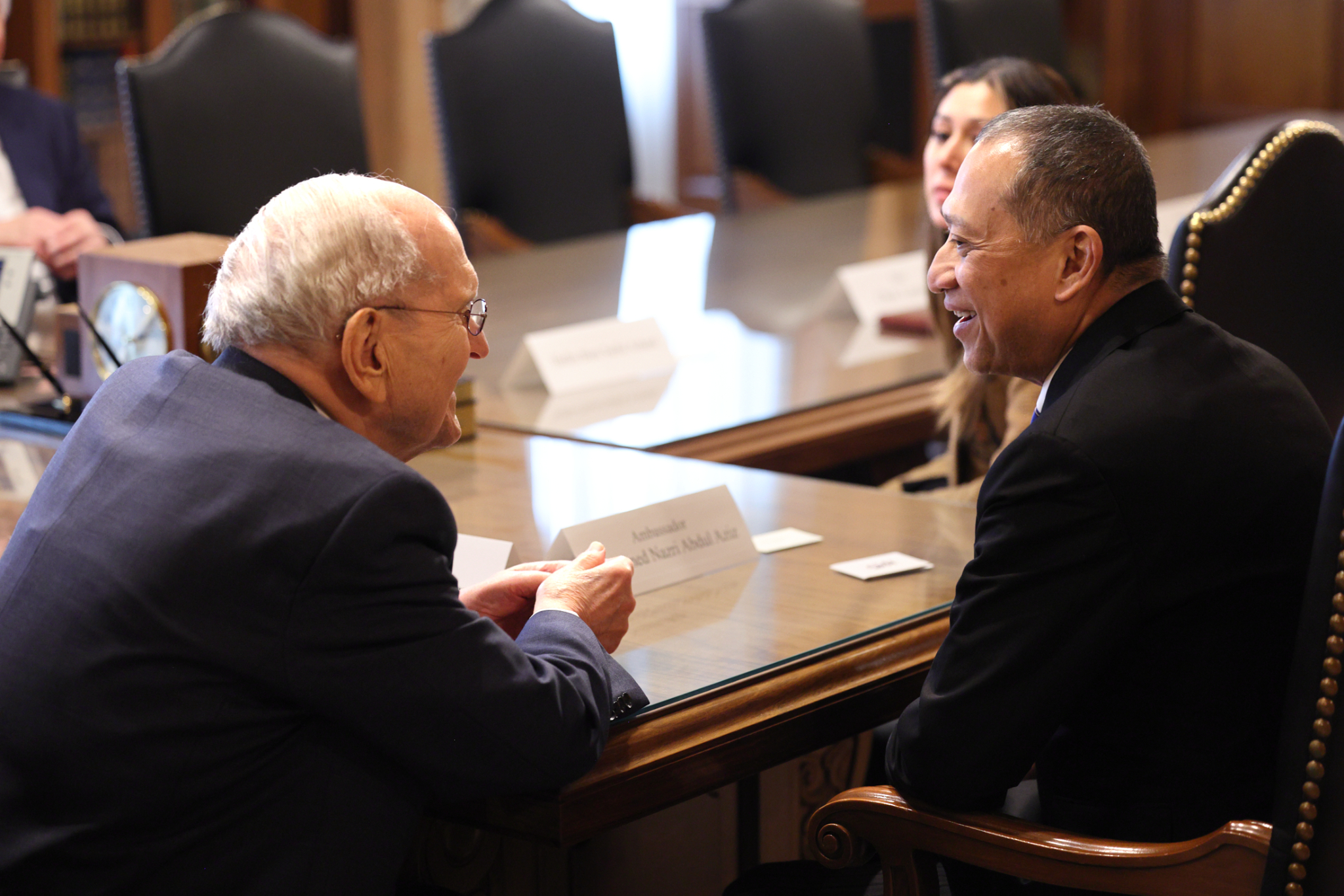 The following day, the First Presidency and Elder Dieter F. Uchtdorf of the Quorum of the Twelve Apostles met with Mohamed Nazri bin Abdul Aziz, the ambassador from Malaysia to the United States. The ambassador was accompanied by his wife, Haflin Binti Saiful Azhar, and their 7-year-old son.