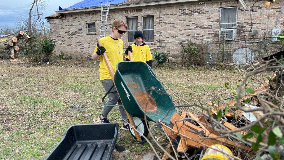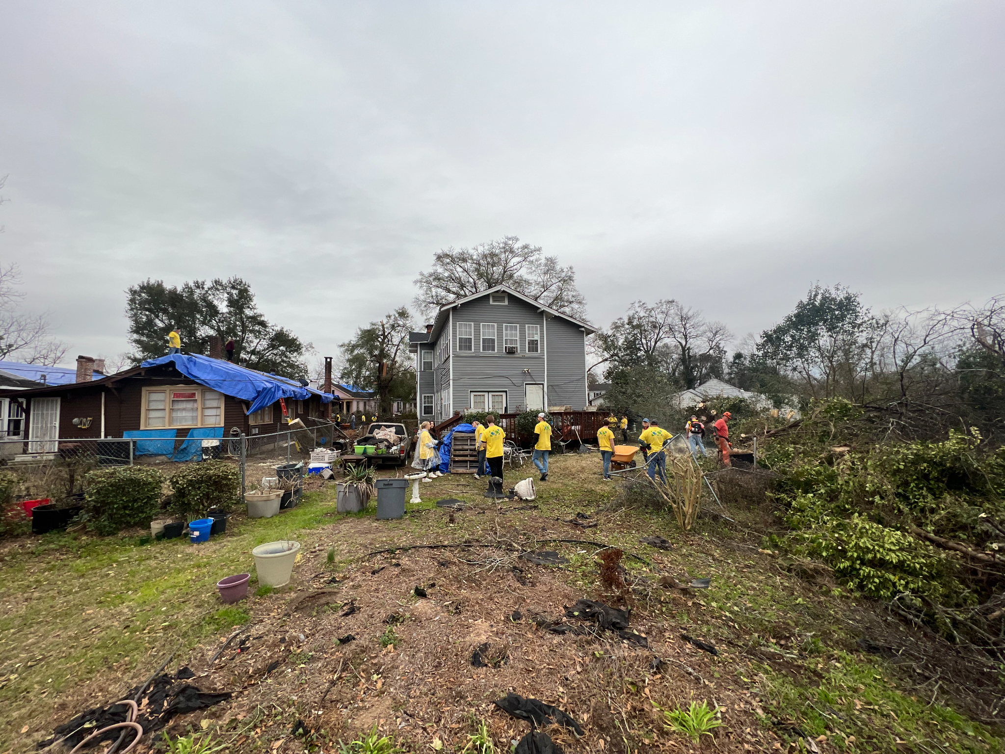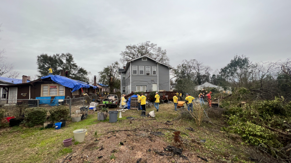 An example of the destruction caused by a recent tornado in Prattville, Alabama. Photograph taken January 2023. 2023 by Intellectual Reserve, Inc. All rights reserved.In Prattville, Alabama, over 800 volunteers have set up a disaster relief command center and have given over 1,100 hours of service so far. They have completed nearly 400 cleaning projects at homes and worship centers, and provided a donation of 250 food boxes.