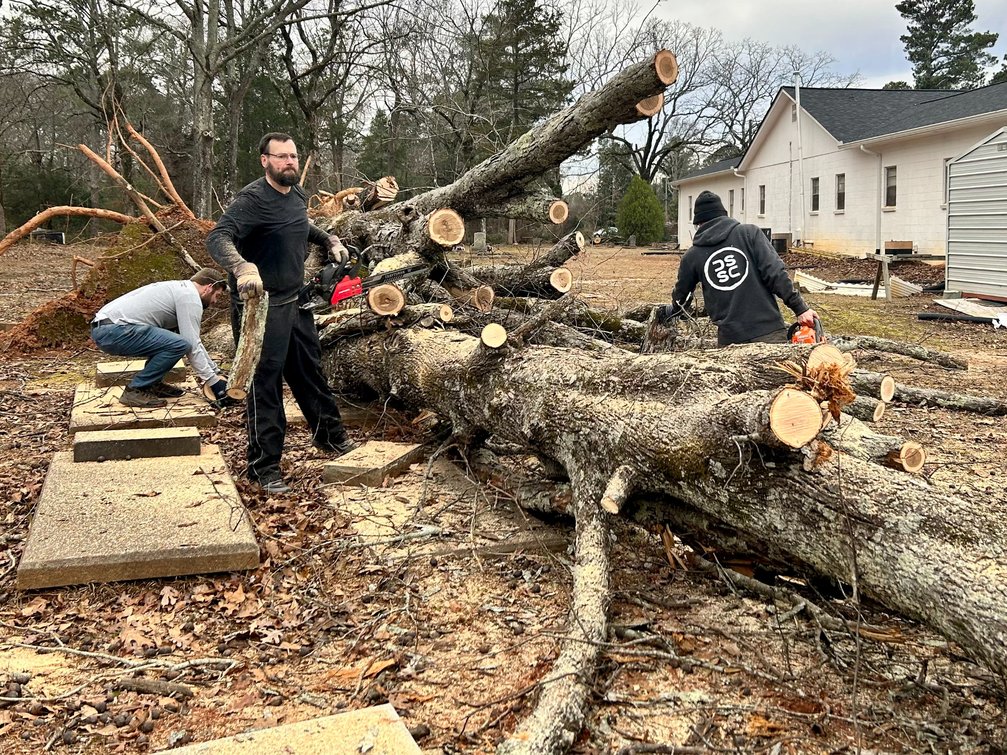 Over 300 volunteers from the Church have helped with cleanup projects at 14 different locations in Griffin, Georgia. Their work included removing debris from private property and Mount Pleasant Baptist Church.