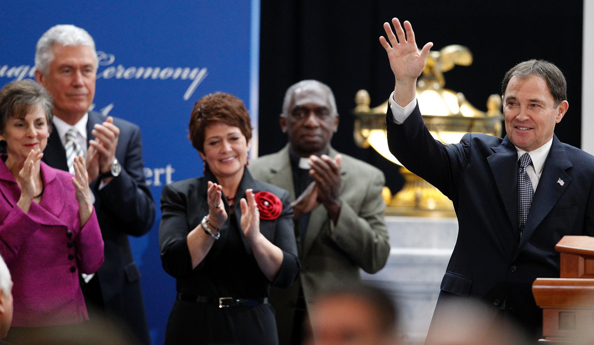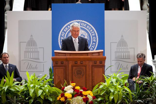President Dieter F. Uchtdorf of the Church’s First Presidency offered the benediction today at the inauguration for Utah Gov. Gary R. Herbert and Lt. Gov. Greg Bell. Elders M. Russell Ballard, Quentin L. Cook and Neil L. Andersen of the Quorum of the Twelve Apostles were also in attendance along with many other community leaders. In his prayer, President Uchtdorf prayed to "Bless all who have been elected by the people of this great state of Utah ... with wisdom and integrity, with courage and foresight, and with kindness and charity to all."