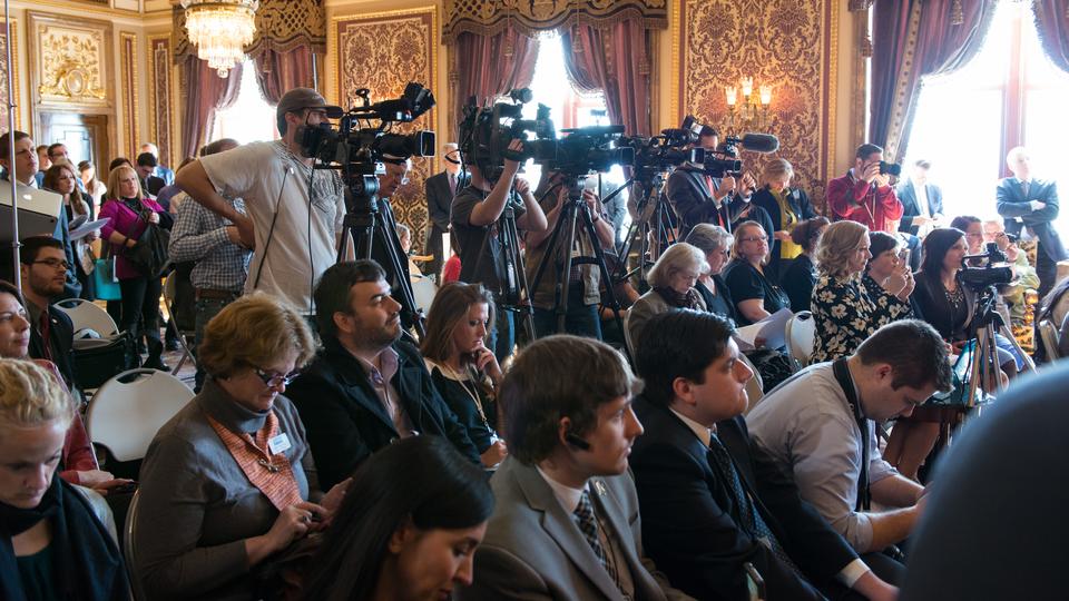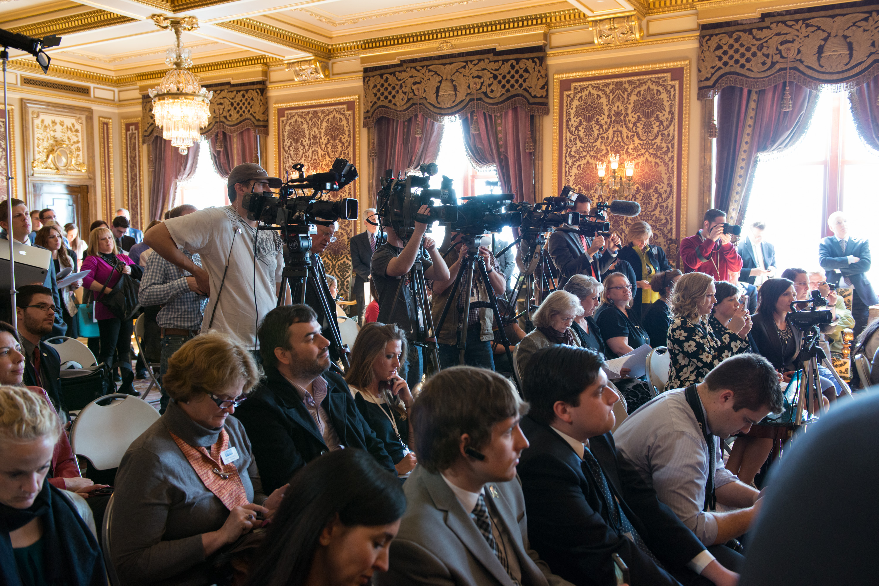 Elder L. Tom Perry and Elder D. Todd Christofferson of the Quorum of the Twelve Apostles and Sister Neill F. Marriott of the Church’s Young Women general presidency attended the news conference to show Church support for the measure.