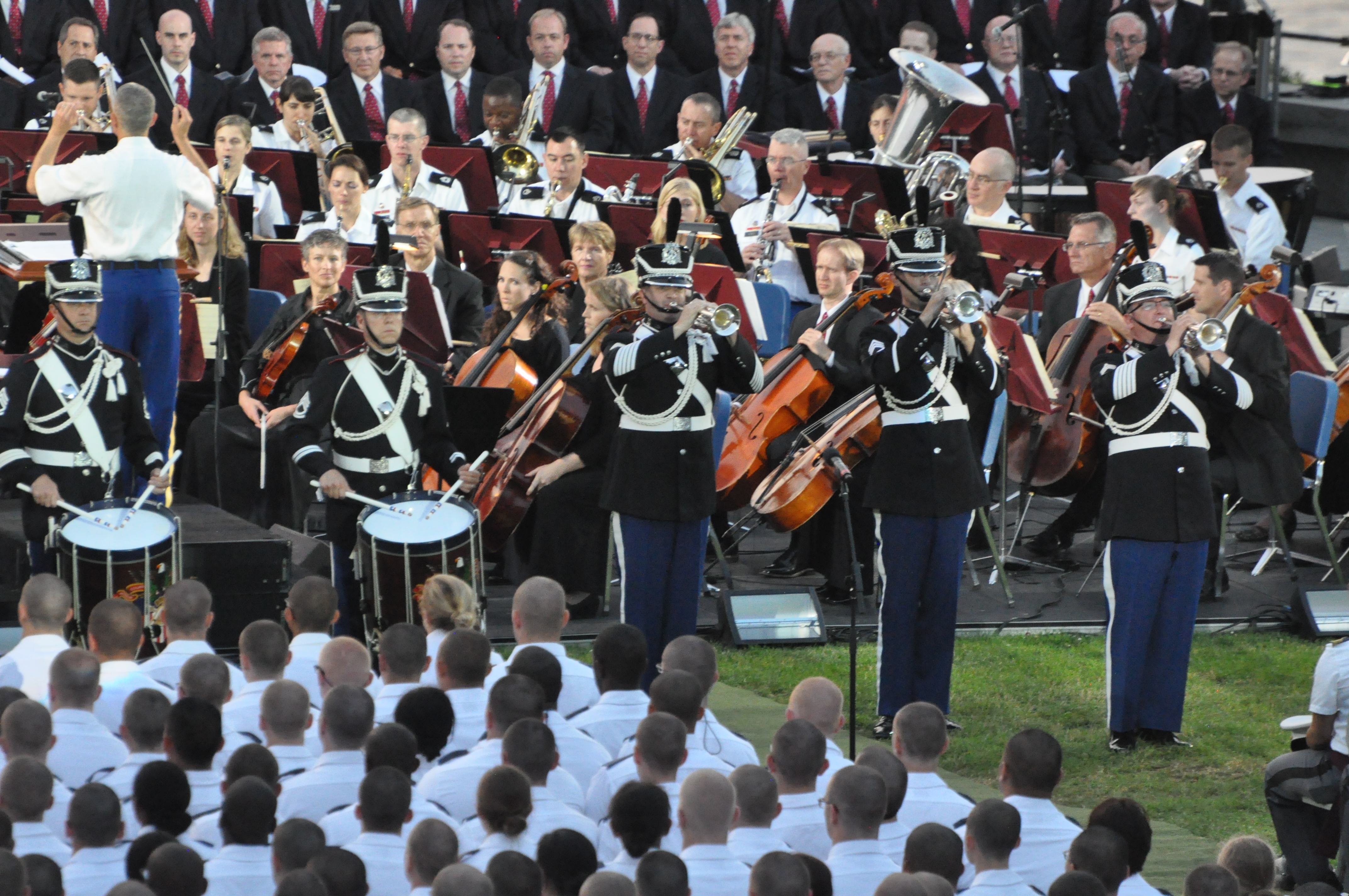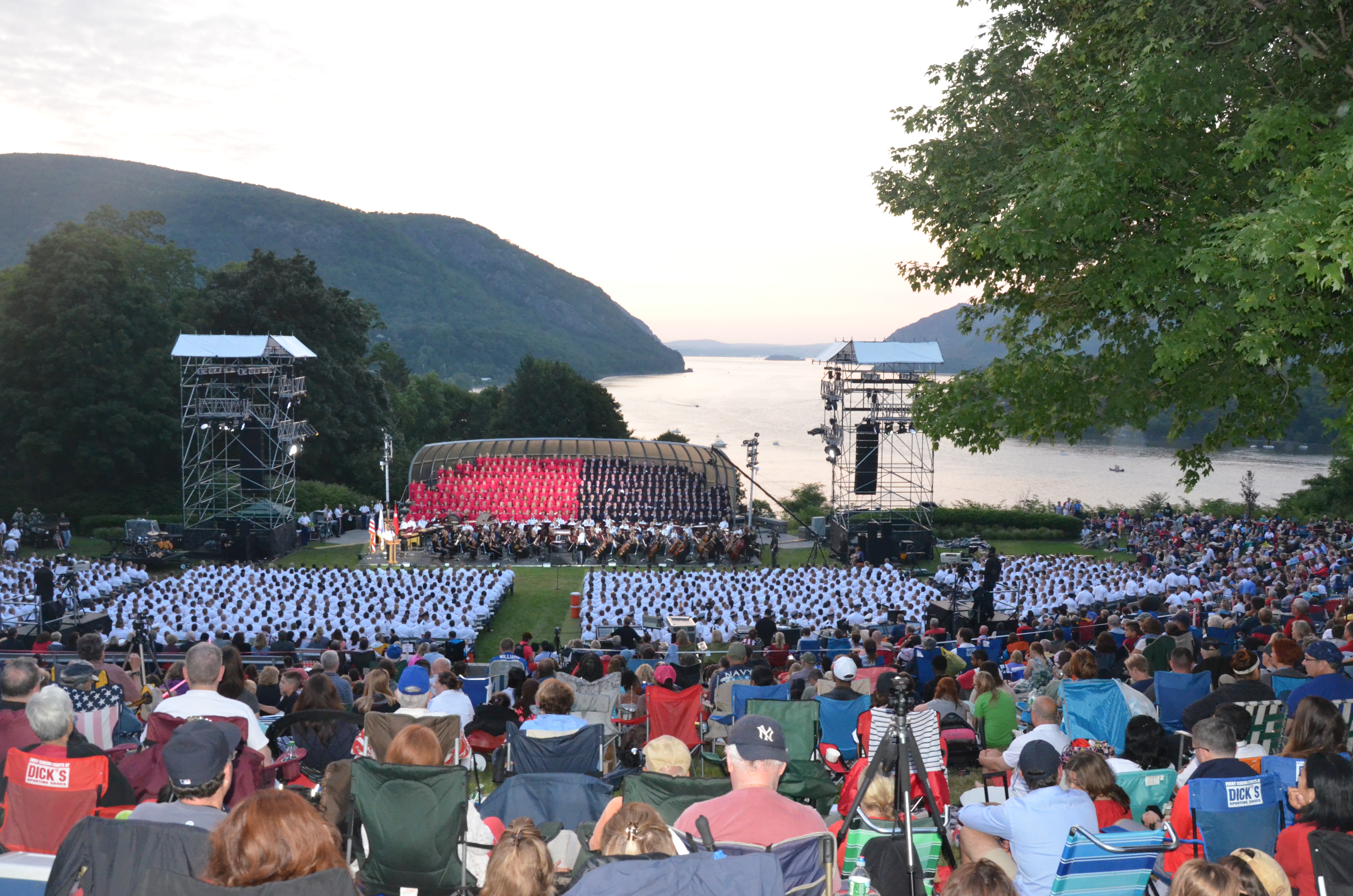 The Mormon Tabernacle Choir and the West Point Band joined musical forces to thrill an audience of more than 10,000 spectators at the 2015 Fourth of July concert, “Music Under the Stars.” Four thousand cadets, including the new freshman class at West Point, arrived in military formation for the Independence Day gala on Trophy Point overlooking the Hudson River.