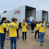 Elder Dahl and his companion, Elder Grayson Johnson from Pocatello, Idaho, helped collect and sort the many donations being dropped off from the community.