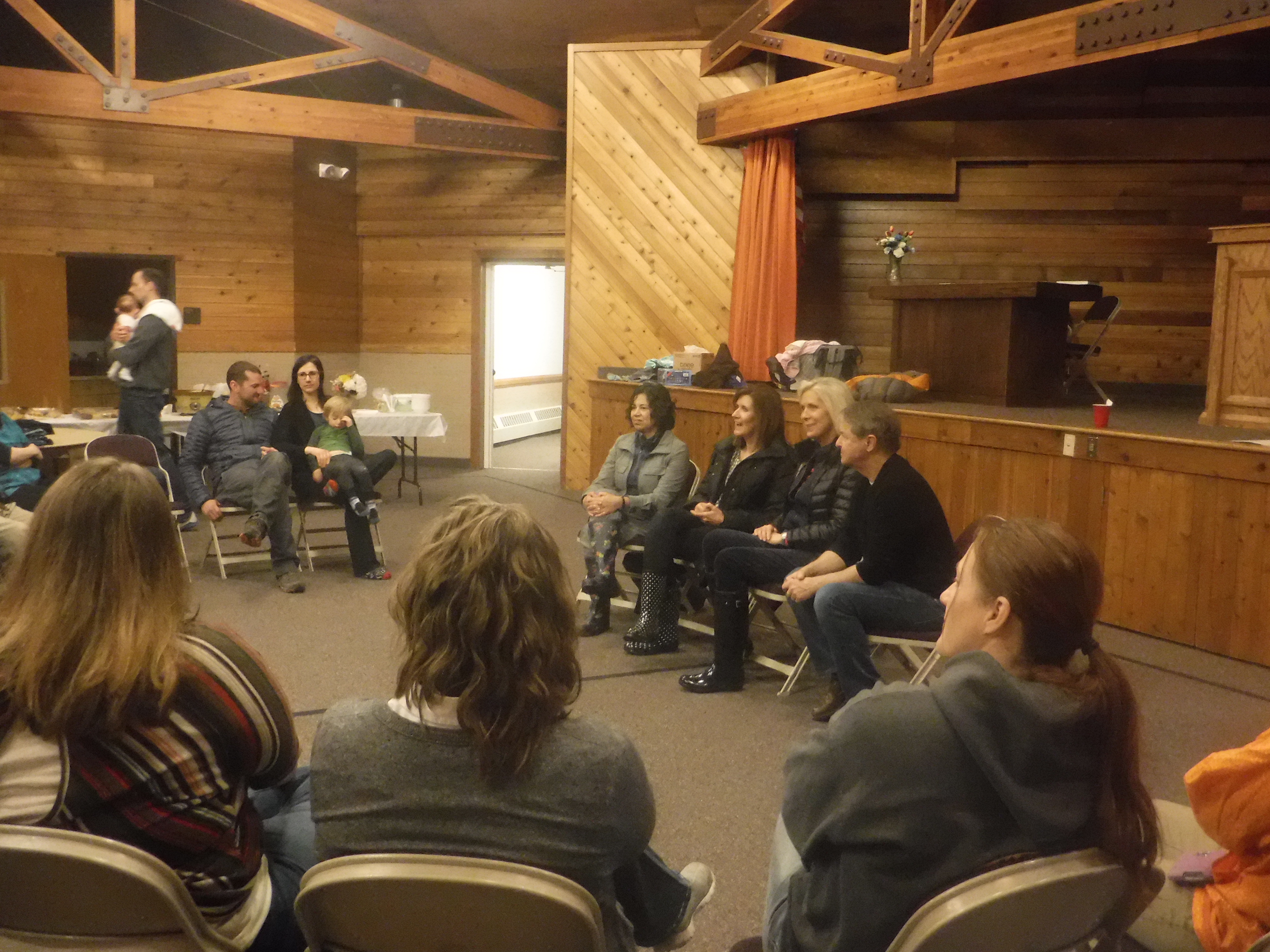 On Saturday, the women auxiliary leaders attended a potluck breakfast where they met with more than 40 members of the Bethel Branch to learn about living in a remote area in Alaska. They were presented with kuspuks, traditional native shirts. The sisters also visited with a local family.