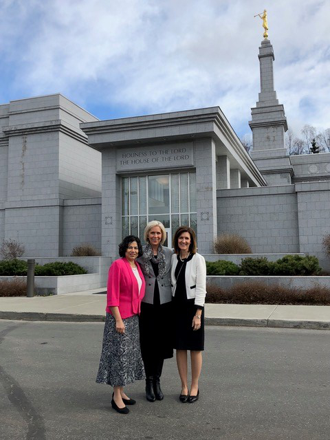 Sister Joy D. Jones, Primary general president; Sister Reyna I. Aburto, second counselor in the Relief Society general presidency; and Sister Michelle D. Craig, first counselor in the Young Women general presidency, arrived in Anchorage, Alaska, Friday, April 20, 2018, for training with local leaders. In the early evening, they traveled to Bethel, 400 miles west of Anchorage.