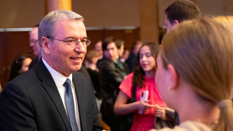 Elder Carlos A. Godoy of the Presidency of the Seventy speaks with young adults following a Worldwide Devotional for Young Adults broadcast from the Salt Lake Tabernacle in Salt Lake City on May 5, 2024. Photo by Adam Fondren, courtesy of Church News.Copyright 2024 Deseret News Publishing Company.