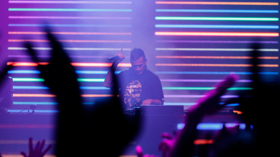 Kaskade performs at a dance at the Mountain American Expo Center in Sandy, Utah, on Friday, August 11, 2023.2023 by Intellectual Reserve, Inc. All rights reserved.Conference and Devotional