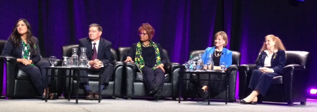Sister Bonnie L. Oscarson, Young Women general president of The Church of Jesus Christ of Latter-day Saints, discussed the impact of faith on the lives of girls with other youth religious leaders during a 90-minute panel discussion at the 2014 Girl Scouts Convention held Thursday, 16 October 2014, in Salt Lake City. The session was titled “Faith in Action: Understand the Impact of Faith on Girls’ Lives and on Their Communities.”