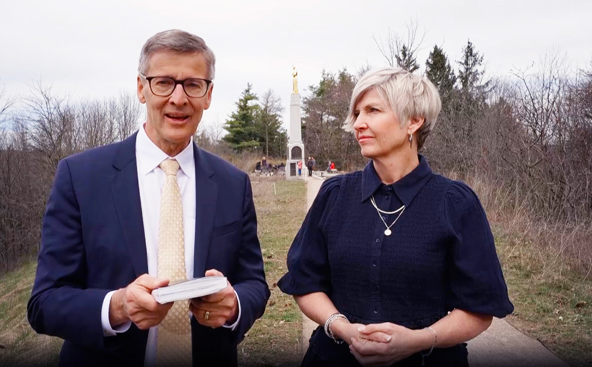 Young Men General President Steven J. Lund and Young Women General President Emily Belle Freeman invited youth “wherever you are in the world ... to share your testimony of Jesus Christ as a disciple of Jesus Christ” during the portion of broadcast filmed at the historic Hill Cumorah in New York in the United States.