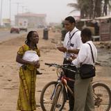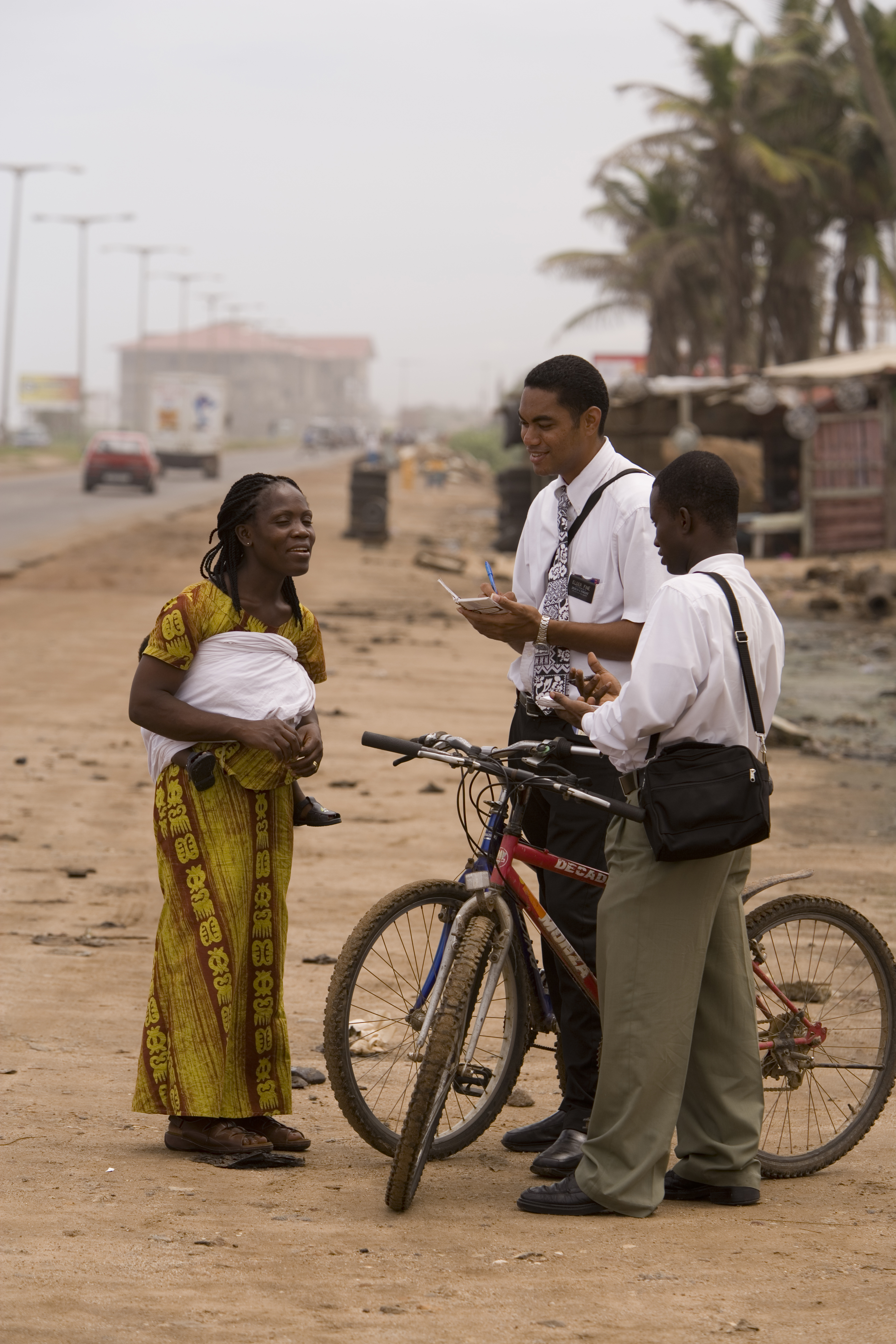 - Two African missionaries speaking to a woman